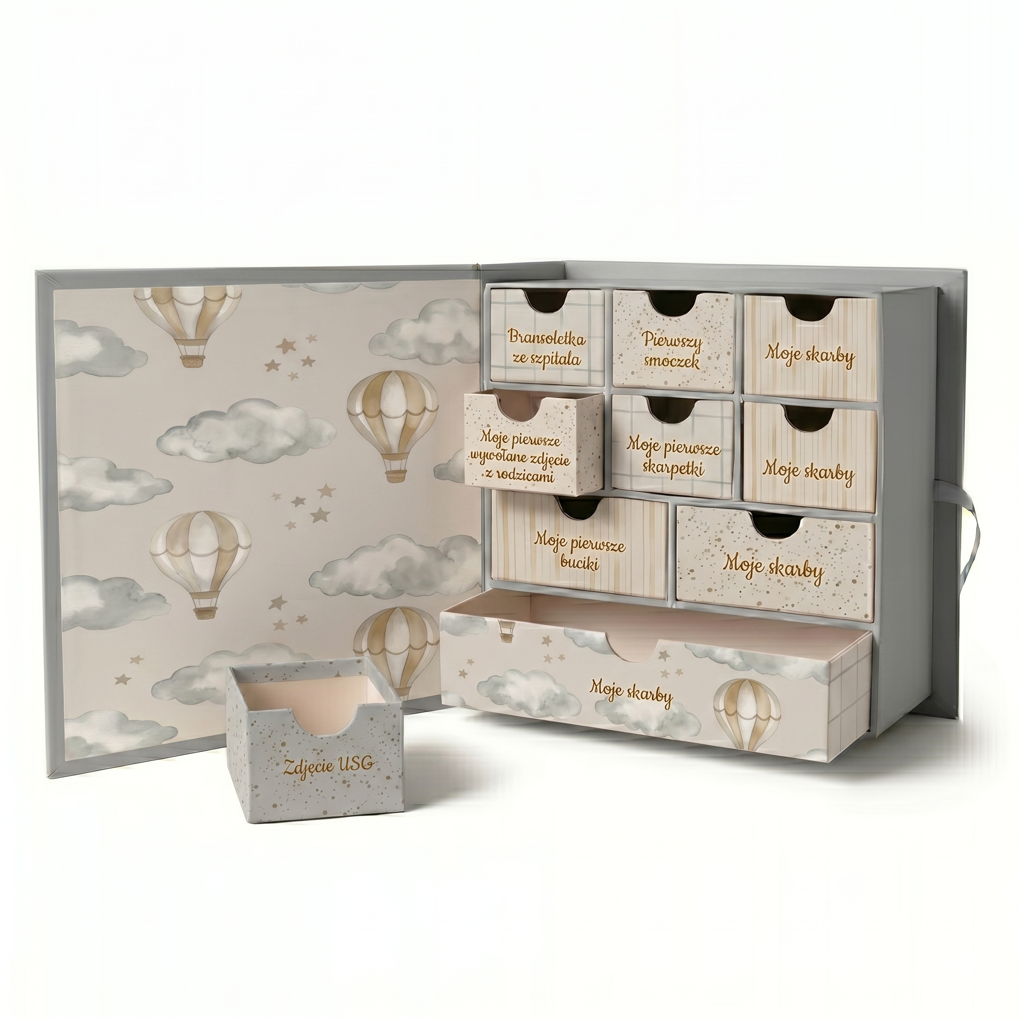 Minimalistyczne pudełko na pamiątki, które pozwala uporządkować i przechować to, co